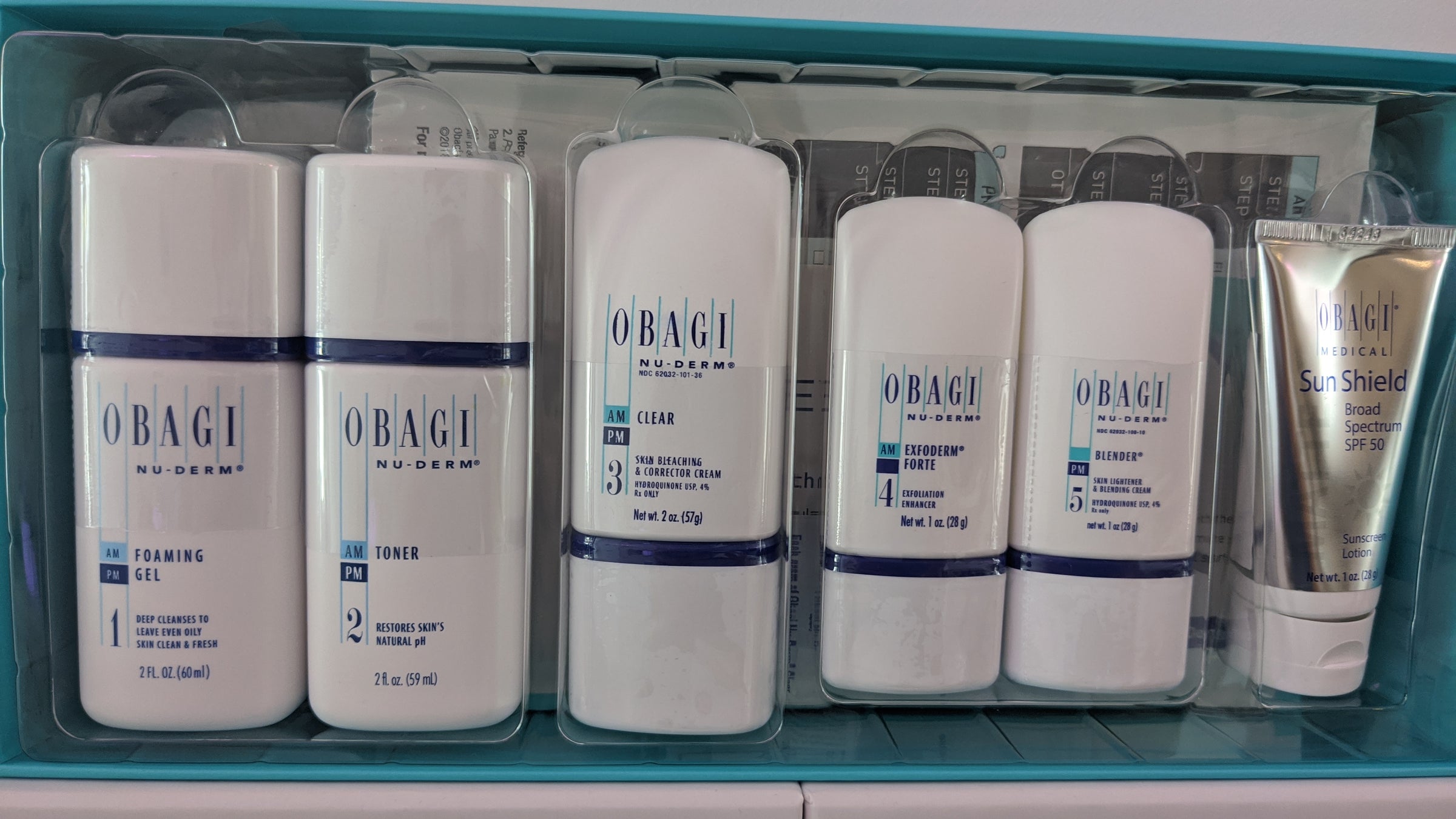 (1) Obagi Nu-Derm Clear (2 oz): A skin-bleaching and correcting cream with 4% hydroquinone to fade and eliminate dark spots, age spots, uneven skin tone and discoloration.