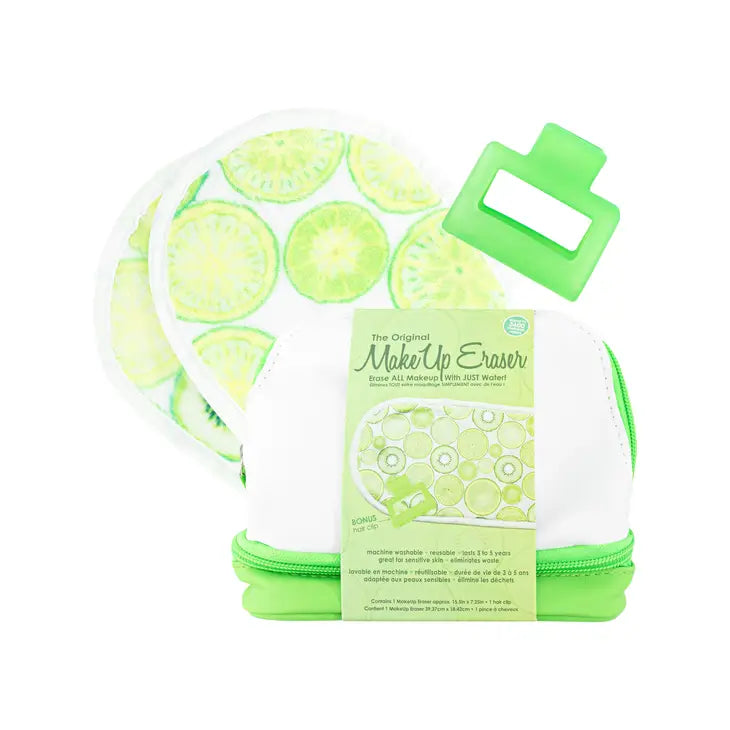 Key Lime Set includes: 1 full-size MakeUp Eraser approx. 15.5in x 7.25in, 1 claw clip, & a reusable makeup bag.