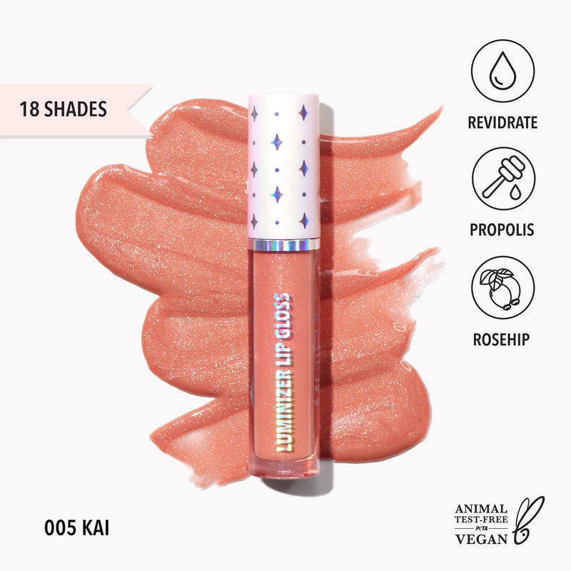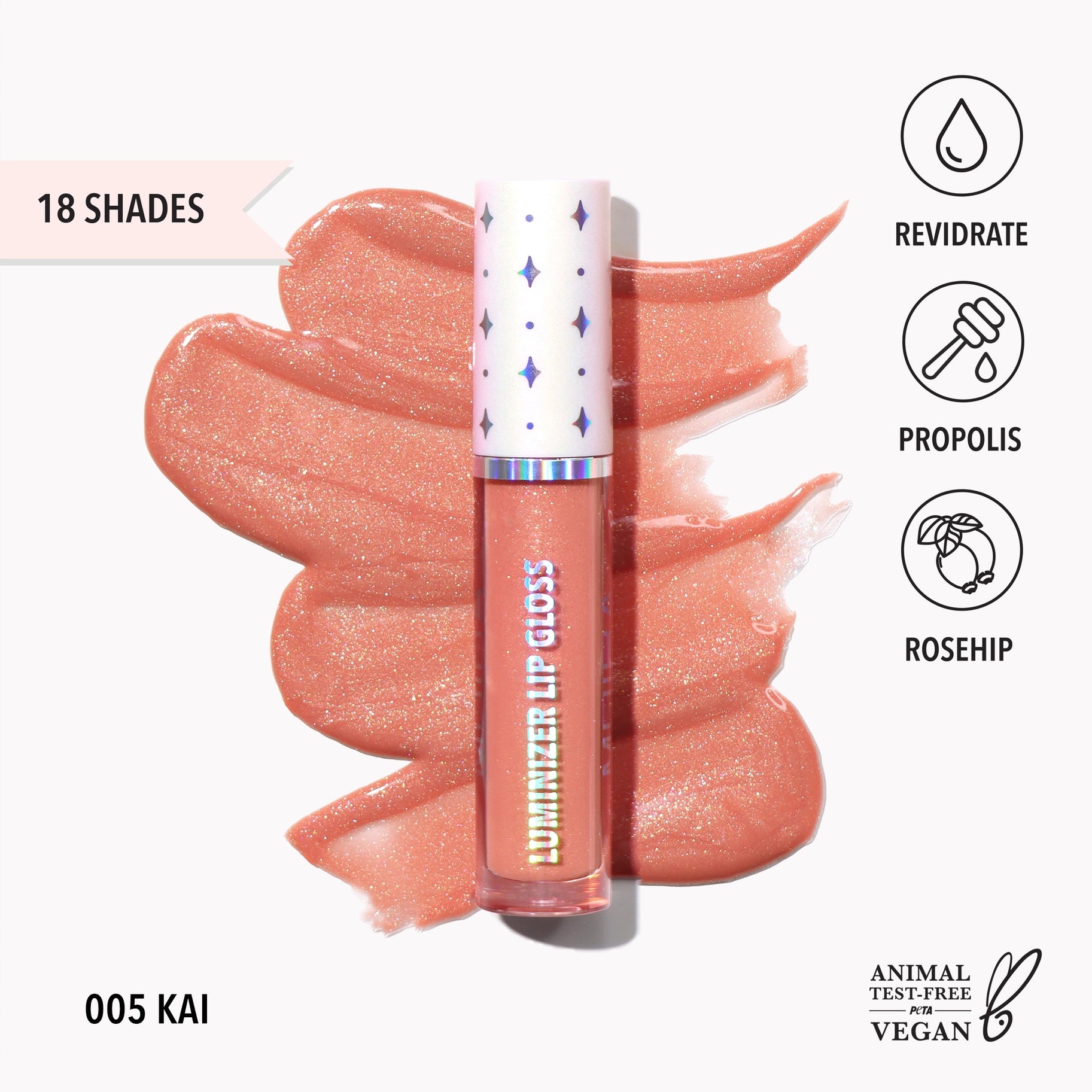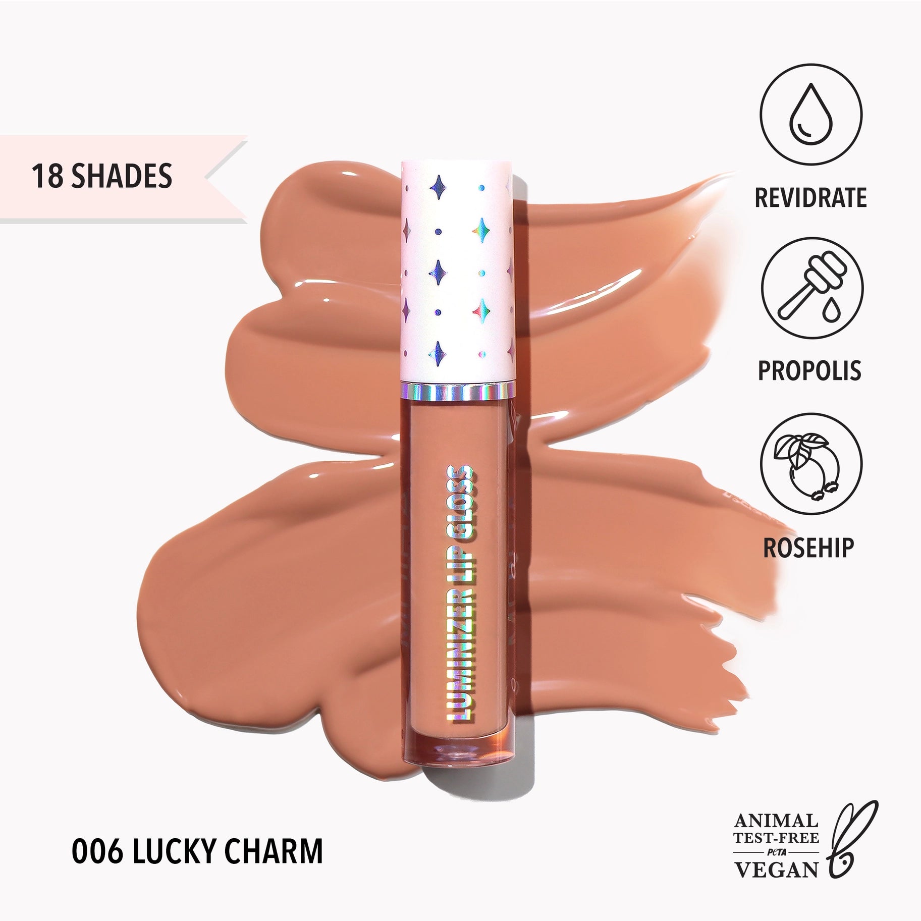 Make a lip statement with our new Luminizer Lip Gloss! A high pigmented lightweight lip treatment serum that's not sticky and will hydrate lips at the same time. Formulated with Rosehip, Honey, and Revidrate to keep lips plump and soft with one easy swipe. Available in 18 irresistible shades!
